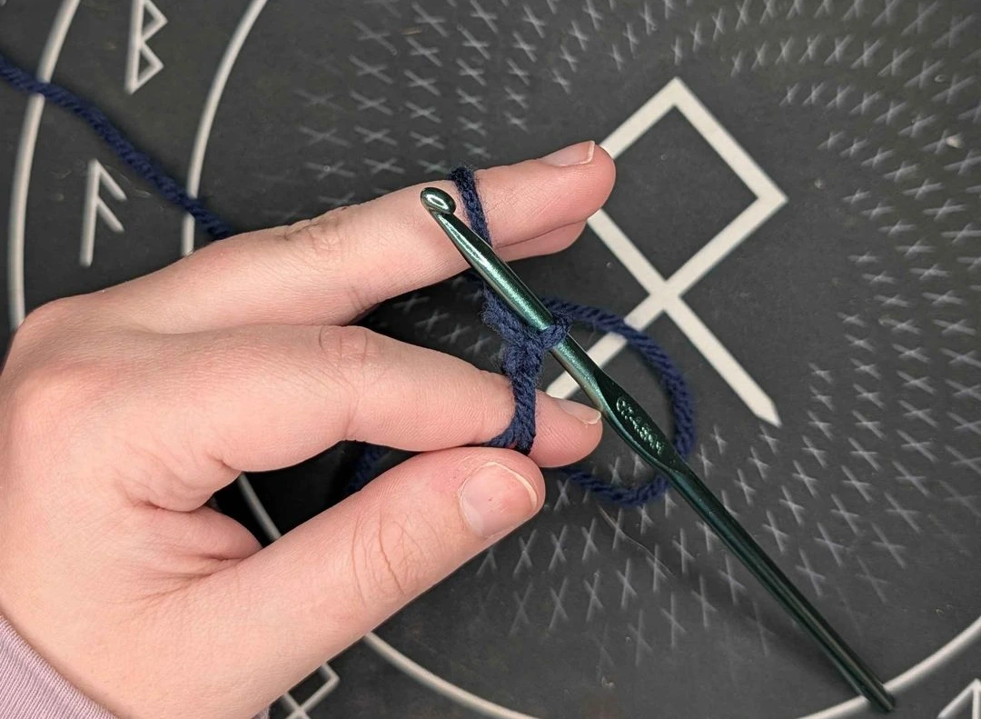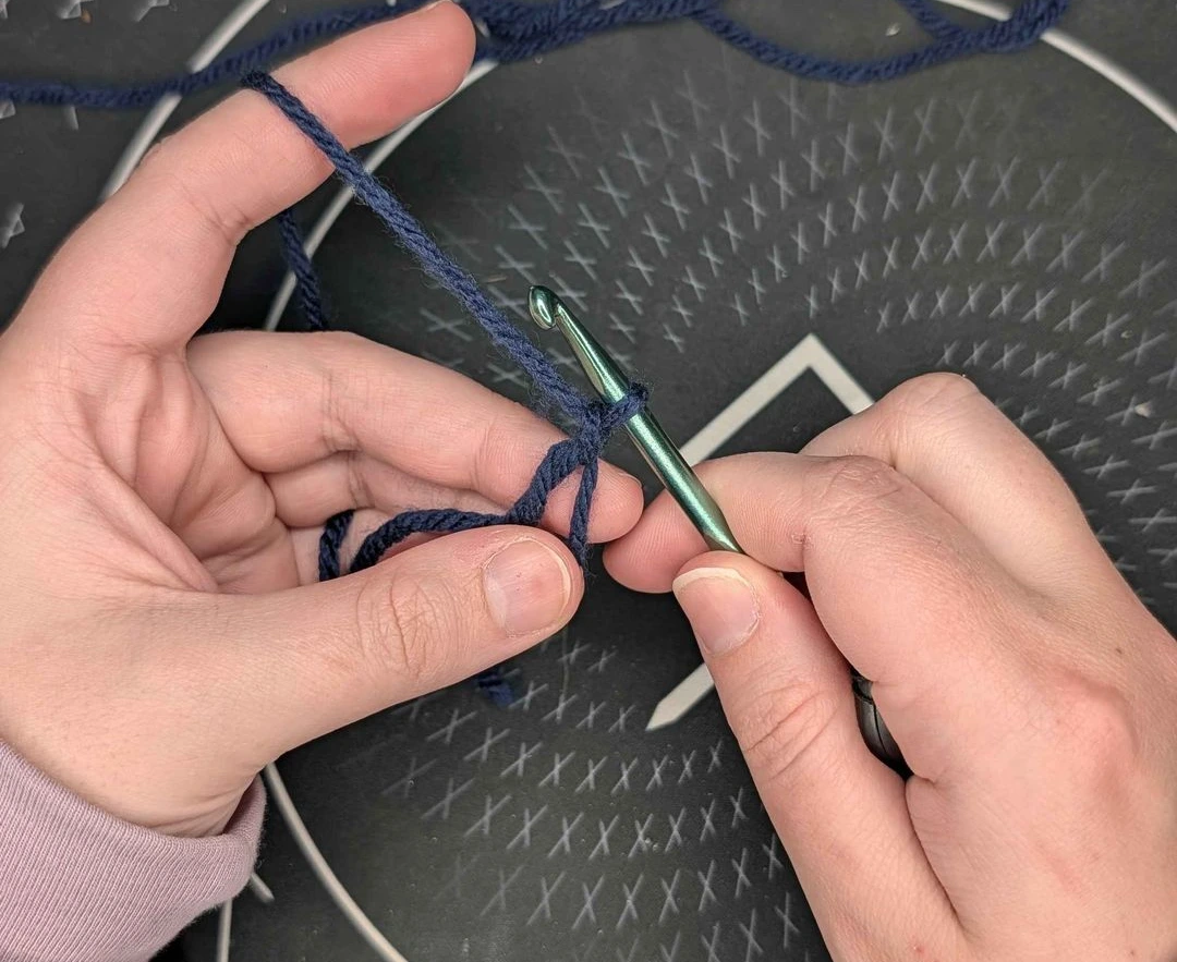 - I like to wrap the working yarn around my pinky to retain tension here. You can also simply hold it between your ring finger and pink as well.