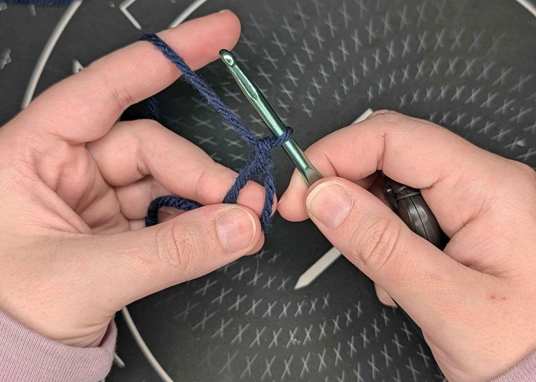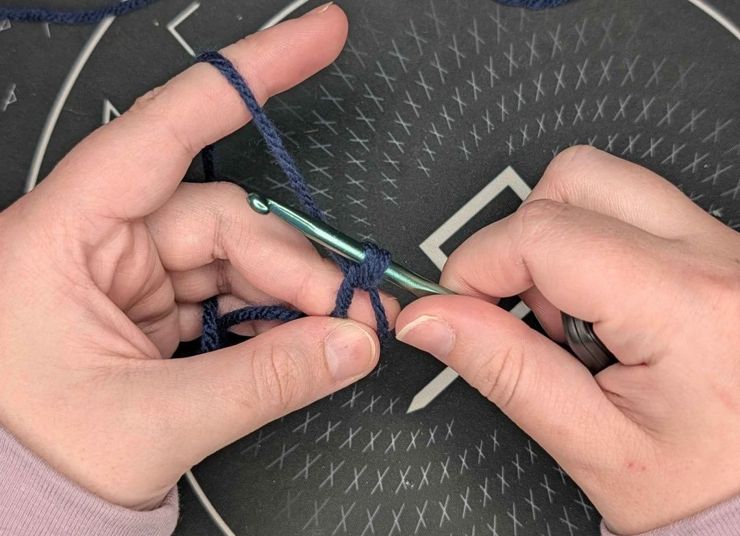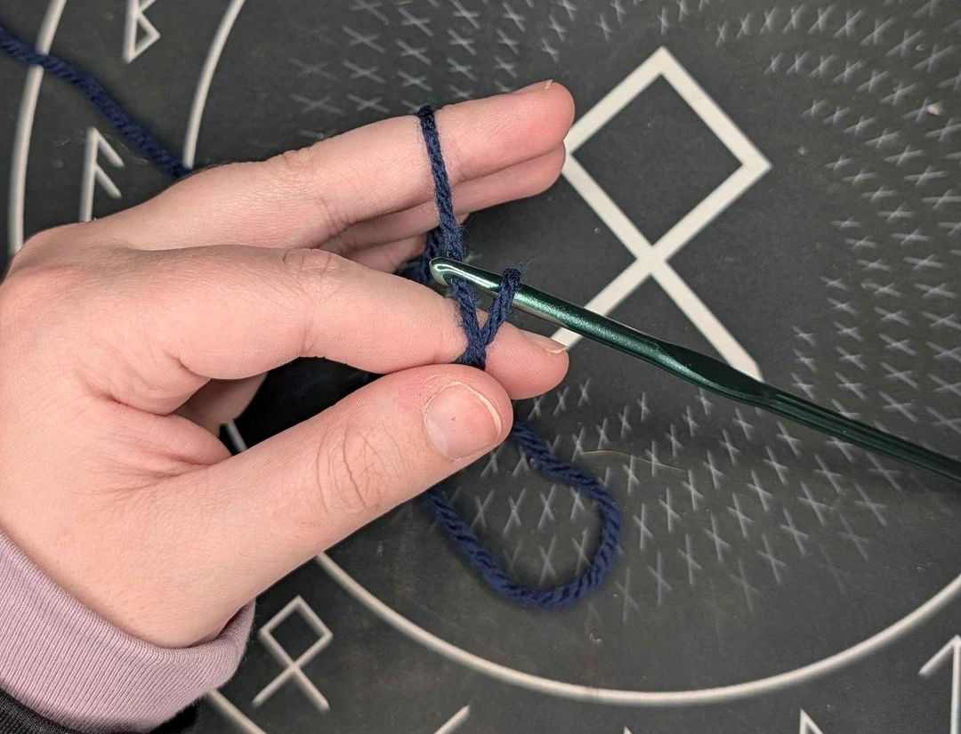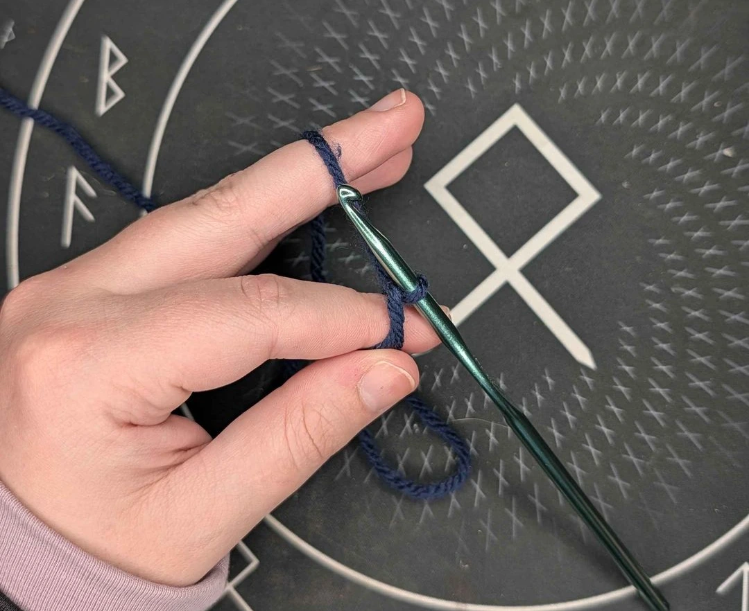 - I like to wrap the working yarn around my pinky to retain tension here. You can also simply hold it between your ring finger and pink as well.